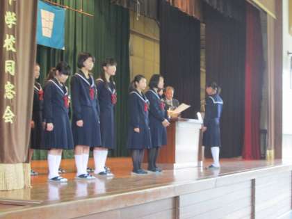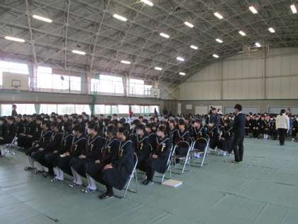 本日の朝会では、校長先生が3年生の今までの成長を紹介し、卒業式に向けてしっかり過ごしてほしいという旨の話をされました。