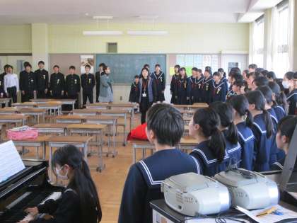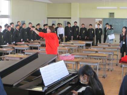 1年生は、卒業生を感動させるために、教師・生徒ともに気合いを入れて歌の練習をしています。