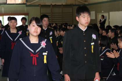 卒業生退場です。 A組です。