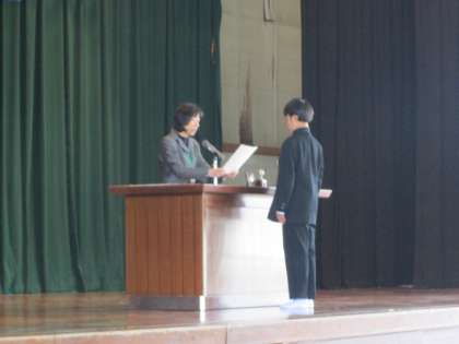 今,みなさんに修了証を渡しました。この修了証は,一年間がんばったという証です。この1年を振り返ってみて,自分ががんばったことや成長
