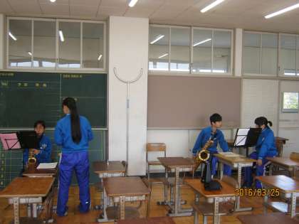 卒業したばかりの3年生の先輩が、練習の様子を見に来てくれました。後輩の音を聴き、的確で温かなアドバイスをおくっていました。ありがとうございました。また来てくださいね。