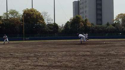 一回裏です。キャッチャー岩田君のナイス送球です。4-0です。
