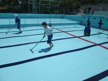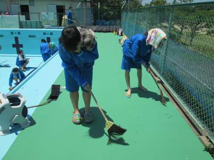 プールの中はもちろん、プールサイド、更衣室、トイレをきれいにしました。