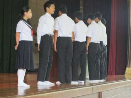 月曜日の朝会では、校長先生が修学旅行で3年生のよかった点を話されました。また、先生の話では、石川先生が自身の体験を踏まえながら、ちょっとした油断が大きなケガのもとになるから注意しましょうという話をされました。1年D組からは、熊本地震の募金へ協力してくれた全校生徒の皆さんに、お礼の言葉がありました。