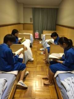 班長会の内容を各部屋に伝えています。1日目は、大きな怪我や体調不良者なく、無事に終えることができました。今から消灯です。