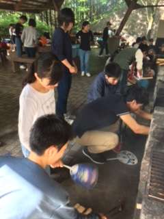 野外炊飯が始まりました。