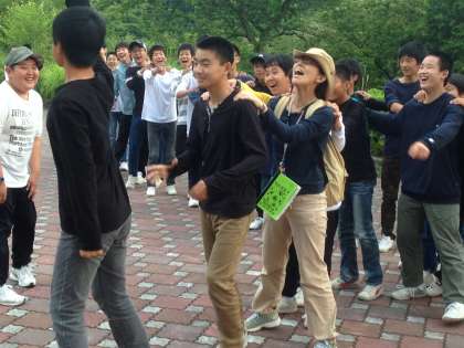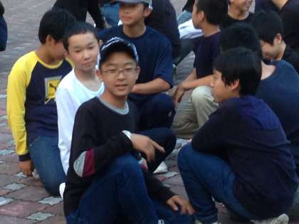 キャンプファイヤーでは、伝言ゲームの後、ジャンケン列車や猛獣狩りで盛り上がりました。