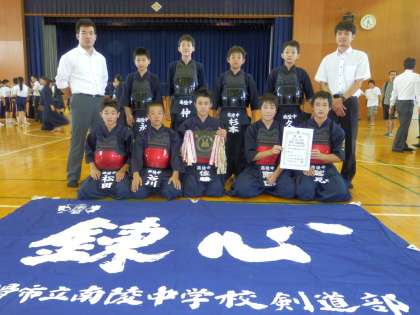女子剣道部は人数の関係で、半田市体育大会(半田祭)には出場せず、常滑市女子剣道大会に出場しましたが、2年生と1年生の南陵中生が中学生の部で1位から3位を独占でした。こちらもおめでとうございます。