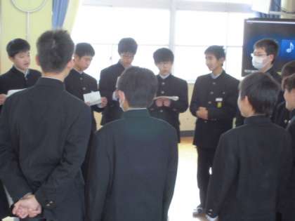2/21(水) 卒業生を送る会に向けて 公開日 2018/02/21 更新日 2018/02/21 1年生 2/28の「卒業生を送る会」に向けて、1・2年生の準備が始まっています。1年生は男女に分かれて歌の練習をしました。卒業生を送る会は、保護者の皆様の参観も大歓迎です。ご都合つきましたら、ご参観ください。 いいね(0)
