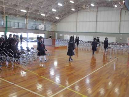 卒業式の練習で、入退場について確認したり、卒業証書授与の練習をしたりしました。