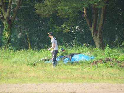 授業公開、部活動見学・部活動懇談会が行われた土曜日でした。早朝、運動場では草刈り機の音が響いていました。本校の校務主任が始業前の時間にグランドの草刈りを行っていました。生徒が知らないところで、汗を流して学校のためにがんばっている教師がいます。他にも、いろいろな教師が、時間を見付けて、草刈り機でグランド等の草刈りをやっていることがあります。