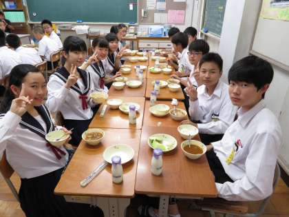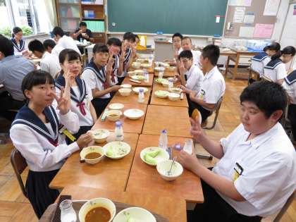 6/21(木) 3年生 給食の様子 〜その3〜 公開日 2018/06/21 更新日 2018/06/21 3年生 3年生の給食の様子です。みんな仲良く会食しています。準備も片付けもさすが早いです。来週からの修学旅行でたくさんのいい思い出ができるといいですね。 いいね(0)