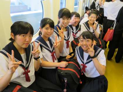 ディズニーシーに向かうモノレール内の様子です。もうすぐ夢の世界です。