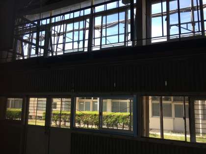 8/30(木) 環境整備1 公開日 2018/08/31 更新日 2018/08/31 学校の様子 体育館の窓枠サッシの改修工事が行われていますが、少しずつアルミサッシの窓が取り付けられています。スムーズに開閉ができる窓になります。体育館北側の通路の下駄箱も塗装をし、きれいにしていただけました。 いいね(0)