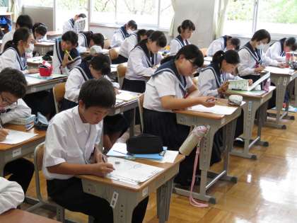 2年生では、総合的な学習の時間に、職場体験学習のまとめの新聞づくりを行いました。キャリア教育の一環として、いい学びになっています。