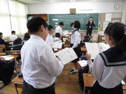 教育実習の最終日、英語科の教育実習生の研究授業が行われました。少し緊張気味ではありましたが、テンポ良く英語の授業を行いました。
