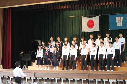 学級ごとに体育館で合唱の練習をしました。お互いに聞き合うことで、自分のクラスの強みや足りないところに気が付き、歌声に磨きがかかりそうです。