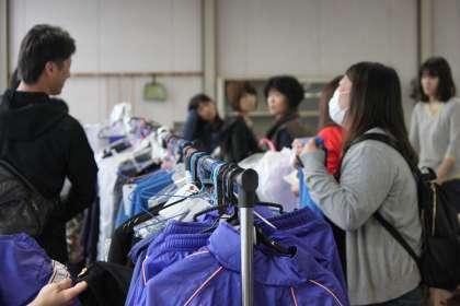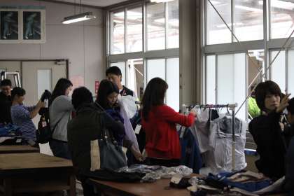 金工室では、提供していただいた制服やジャージ等のリサイクル用品の販売が行われました。ご協力いただいたPTA役員・生活委員会のみなさまありがとうございました。バザーの収益金は生徒の活動に活用いたします。