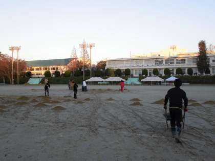 10/28(日) 南陵祭(体育祭)に向けて 公開日 2018/10/28 更新日 2018/10/28 学校行事 早朝より、保護者はお弁当づくり、職員はグランドづくり・・・というわけで体育祭の実施に向けて準備が進んでいます。 水たまりやぬかるみ等にお気を付けてご来校ください。 本番は、南陵中生の勇姿が見られることを期待しています。 いいね(0)
