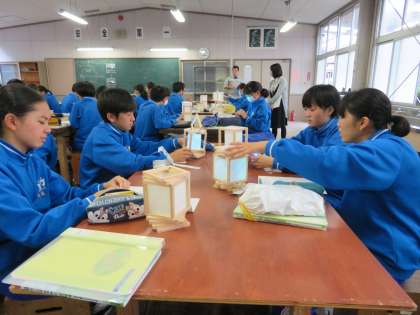 11/6(火) 2年生技術科研究授業 公開日 2018/11/06 更新日 2018/11/06 学校の様子 2年生で技術科の研究授業が行われました。「エネルギー変換に関する技術を利用した製品の設計・製作」という単元で、これまでに製作した照明を鑑賞し、お互いに作品のよさを見付け合う学習でした。それぞれの作品のよさをさまざまな観点から見付けていました。 いいね(0)