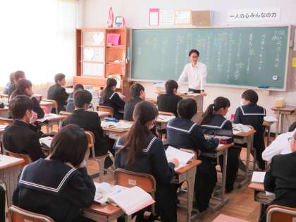 3年生数学の授業の様子です。三角形の相似条件など図形について学習しています。一番最後は、2年生国語の授業の様子です。古文について学習しています。どのクラスも集中して落ち着いた取組です。