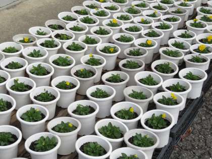 パンジーの花が少しずつ開花しています。卒業式に立派な花が飾れるように、校務主任や用務員などさまざまなスタッフが協力して栽培しています。