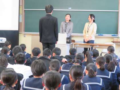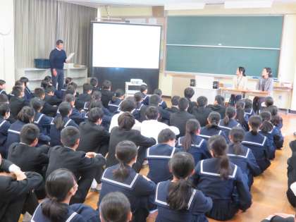 3年生では、常滑市保健センターの保健師さんを講師に招き、「命の授業」を行いました。妊娠・出産等にかかわる話や命の大切さ、性感染症の予防の話等をお聴きしました。タブーとなりやすい「性」についての話を具体的に分かりやすくお話しいただきました。これから誰もが知っておかないといけない「性」・「命」のことについて大変勉強になりました。