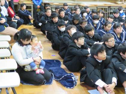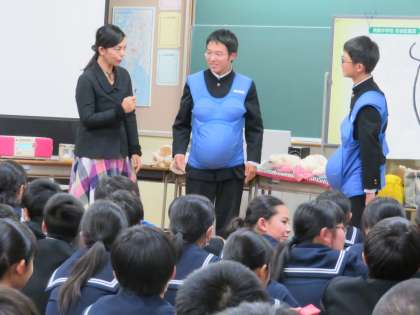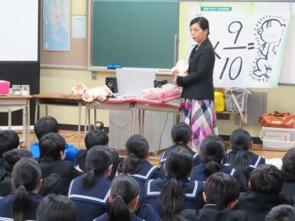12/6(木) 2年 命の授業 公開日 2018/12/06 更新日 2018/12/06 2年生 2年生では、助産師の方を講師に迎え、命の授業が行われました。生命誕生にかかわる話を聴き、命の大切さについて理解を深めました。育休中の教員も赤ちゃんを連れて来校し、お子さんの誕生や子育てにかかわる話をしていました。子どもたちは妊婦体験の装具をつけて妊婦の大変さを実感したり、妊娠中の赤ちゃんを守っている羊水の働きを知る実験をしたりしました。 いいね(0)