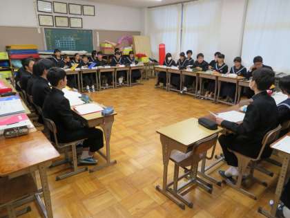 12/11(火)生徒議会 公開日 2018/12/11 更新日 2018/12/11 学校の様子 後期第1回の生徒議会が開催されました。時間の限られた中ですが、議長の選出や後期生徒会活動報告会などの提案がなされました。 いいね(0)
