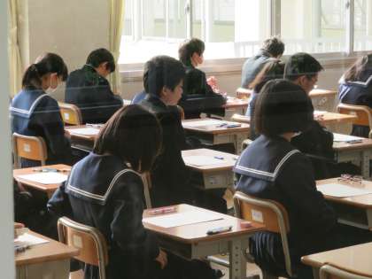 写真はテスト前の教室の様子です。緊張感が感じられます。