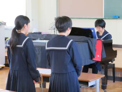 卒業式で歌う国歌、校歌、1・2年生の合唱曲のピアノ伴奏のオーディションが行われました。みんなよく練習してあり、感心しました。思いのこもった立派な卒業式にしたいと思います。