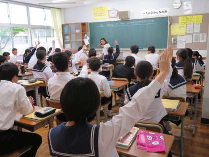 ALT 公開日 2019/05/16 更新日 2019/05/16 3年生 本年度から英語の授業に入ってくださるALTが替わりました。3年生の授業では、一人一人が英語で自己紹介をしたり、ALTに質問したりしていました。いつもにも増して、教室からは子どもたちの楽しそうな声が聞こえてきました。今年も英語の授業が楽しみですね。 いいね(0)