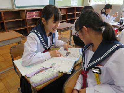 英語の授業 公開日 2019/05/21 更新日 2019/05/21 1年生 1年生の英語の授業。今日は暗唱でした。自席で何度も練習し、自分のタイミングで勇気を出して先生のもとへ。結果は見事合格。証明のシールを貼ってもらって喜ぶその表情は、最高でした。 いいね(0)