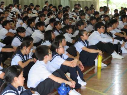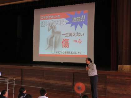 第1回学校保健委員会を開催しました。テーマを「メディアとの付き合い方を考えよう」とし、KDDIスマホ・ケータイ安全教室の方にご講演いただきました。中学生のスマートフォンの所有率も非常に高くなっています。スマートフォンやインターネットの怖さを事例を基にお話しいただき、子どもたちにとってはこれからの使用の在り方を考えるよい機会となりました。