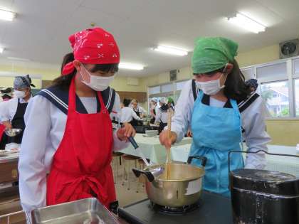 調理実習 公開日 2019/06/07 更新日 2019/06/07 2年生 野外教育活動に向け、2年生が家庭科の時間にカレーライスを作りました。包丁さばきもなかなかのもの。飯ごうを使ってご飯も上手に炊けました。おいしくできたカレーライスに、みんな満足そうでした。 いいね(0)