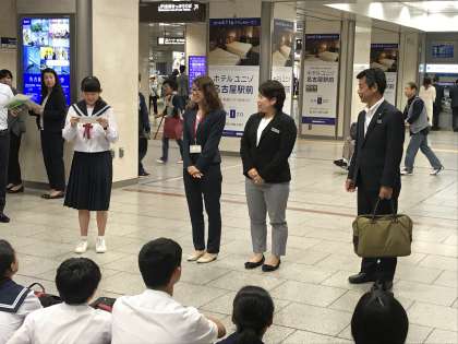 出発式。実行委員のすばらしい大きなあいさつで始まりました。皆で思い出深い、学びの多い3日間にしていきましょう。