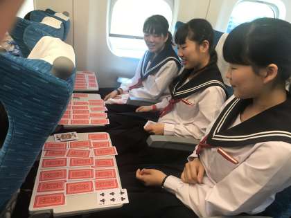 新幹線車内での神経衰弱。初めて見ました。でも、楽しそうです。