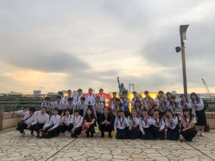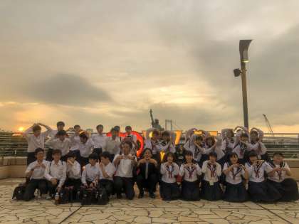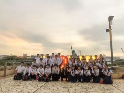 夕食後に記念撮影をしました。これから学級別研修に出発します。
