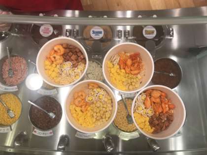 好きなスープとトッピングを選び、アルミキャップで蓋をします。