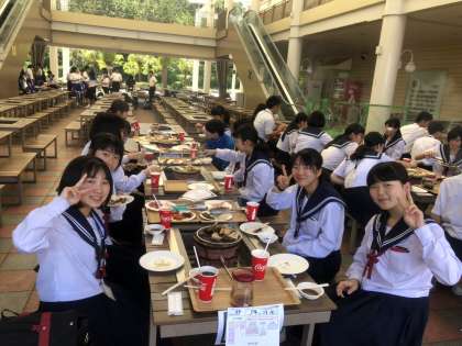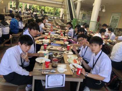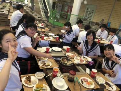 C組は昼食中です。海鮮バーベキューに舌鼓を打っています。