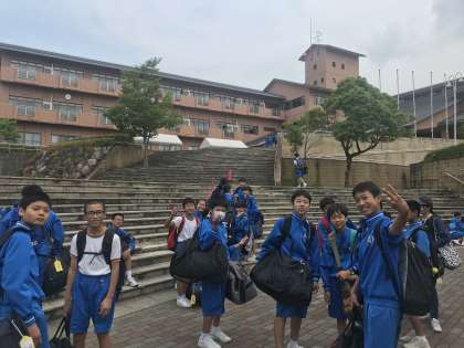 少年自然の家に到着しました。天気は曇りです。いよいよ始まります