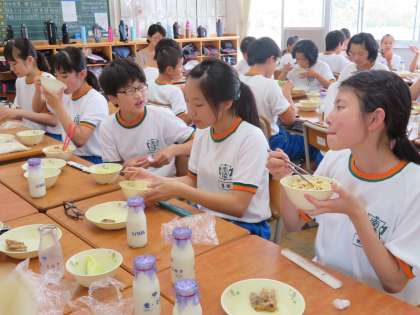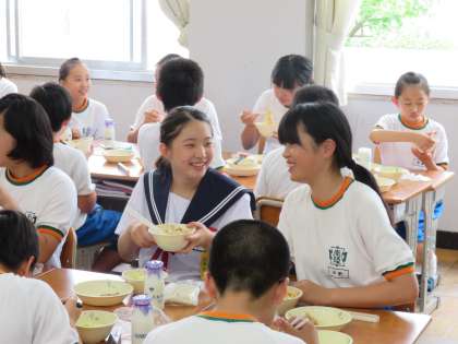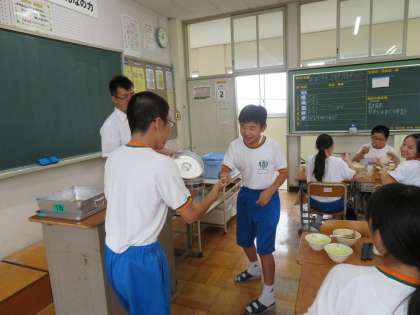 給食の時間、1年生の教室から楽しそうな声が聞こえてきました。