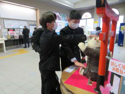 自信をもって! 2 公開日 2020/03/05 更新日 2020/03/05 3年生 「合格祈願招き猫」の肉球を今日こそしっかり触っておこうと皆が集まります。中には、肉球を触った手で自分の頭をなでている子も…。 いいね(0)