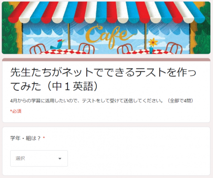 さぁ、今日からテストに挑戦です。何回でも挑戦できるので、力試しにどうぞ。中2の参加もOKです。アドレス等の回収はしていませんので、保護者のスマホやPCからのアクセスでも大丈夫です。テストの結果を活用して4月の学習に役立てます。全部で4問!挑戦者求む!!中1英語テスト(クリック)