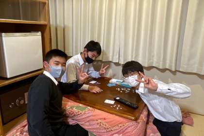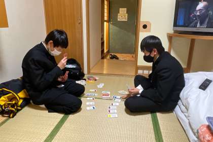 夕食前にちょっと休憩。カードゲームが始まっていた部屋もありました。これぞ修学旅行。