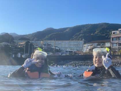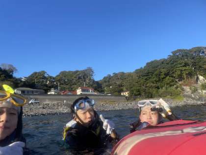 ウェットスーツを着込んでシュノーケリングに挑戦です。
