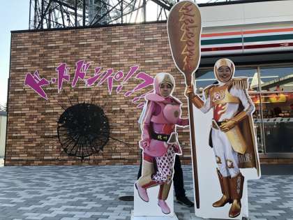 お土産選びも楽しいひととき。先生との記念の1枚。はい、ちーす!