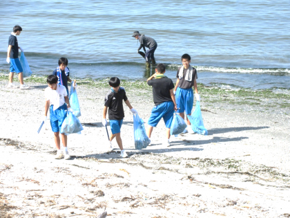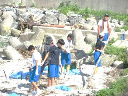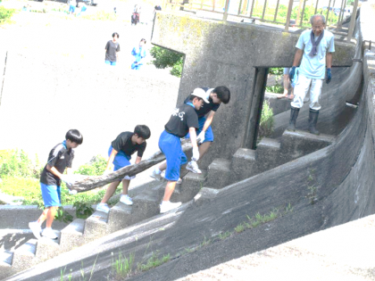 さすが3年生、手際よく清掃しています。重い木々も、地域の方と連携しながらトラックまで手際よく運んでいます。