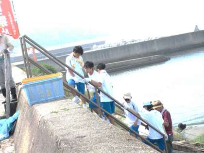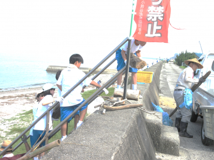 1年生5名は、初めての参加となりました。5人のチームワークがとてもよく、地域の方と協力しながら、海岸をきれいに清掃しました。