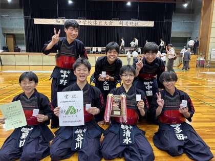7/20 郡大会 剣道(メディアスちた) 公開日 2024/07/20 更新日 2024/07/20 学校の様子 本日は女子の個人戦と男子の団体戦でした。明日は女子団体戦、男子個人戦となります。 初めの写真は、試合後の笑顔の1枚。2枚目は、応援してくださったみなさんとともに写真撮影。3枚目は表彰式の様子。 いいね(0)